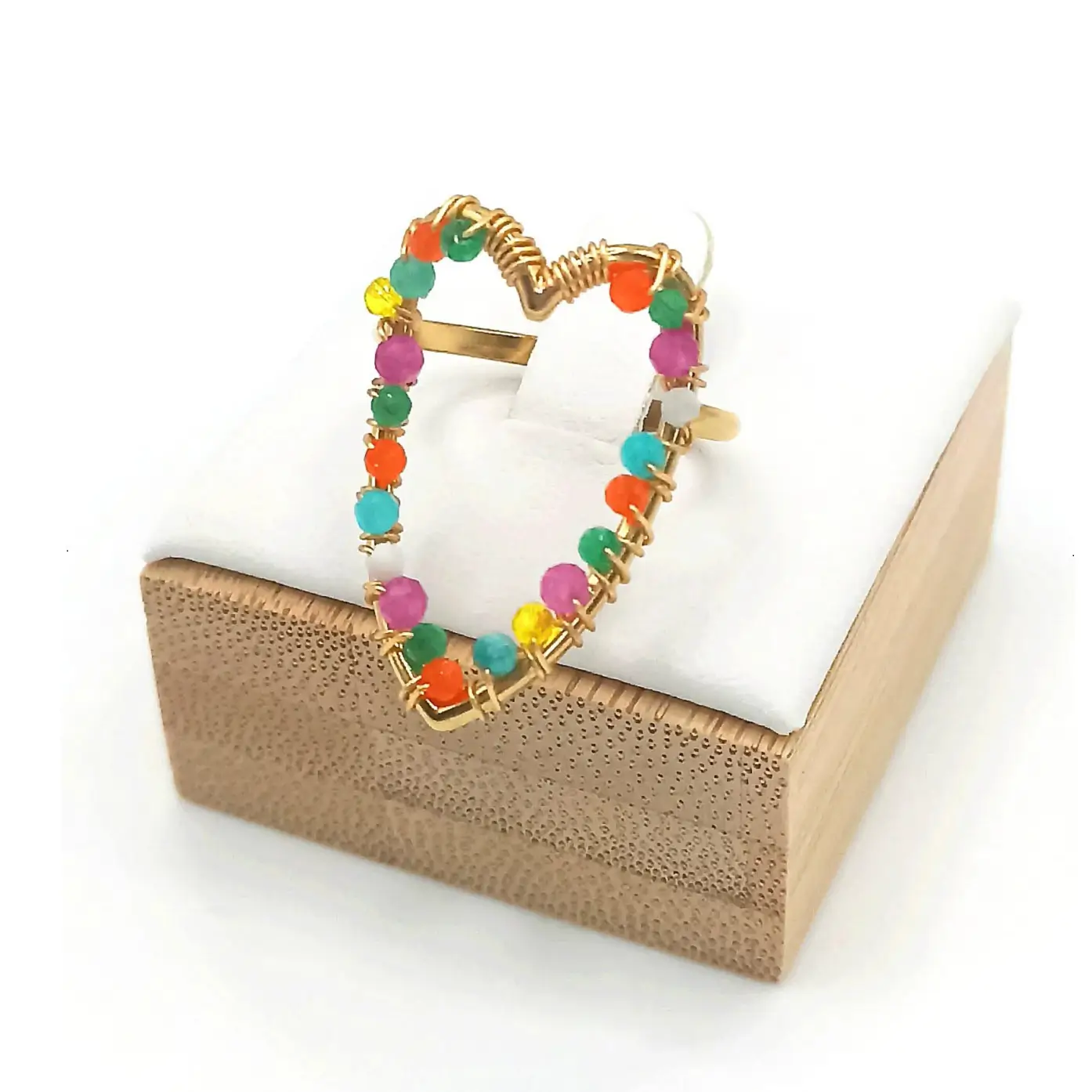 Bague Cœur avec Perles Colorées – Un Bijou qui Parle à Votre Cœur