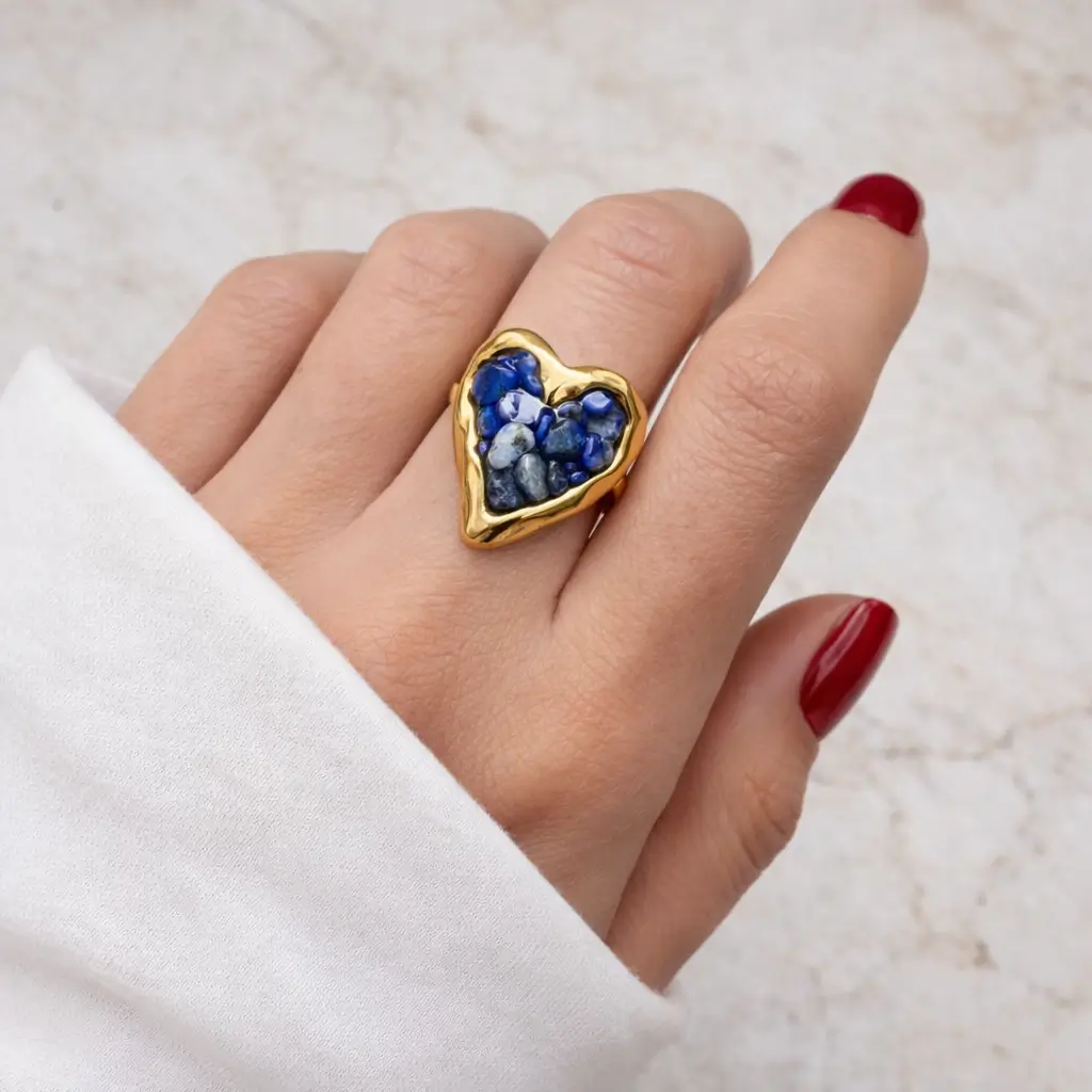 💙 Bague Cœur de Pierre Bleu – Un bijou élégant, symbolique et intemporel
