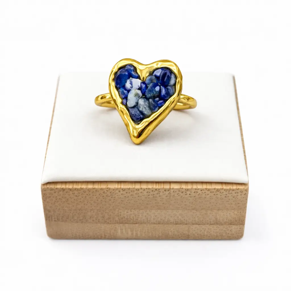 Bague Cœur de Pierre Bleu – Plaqué Or 18K