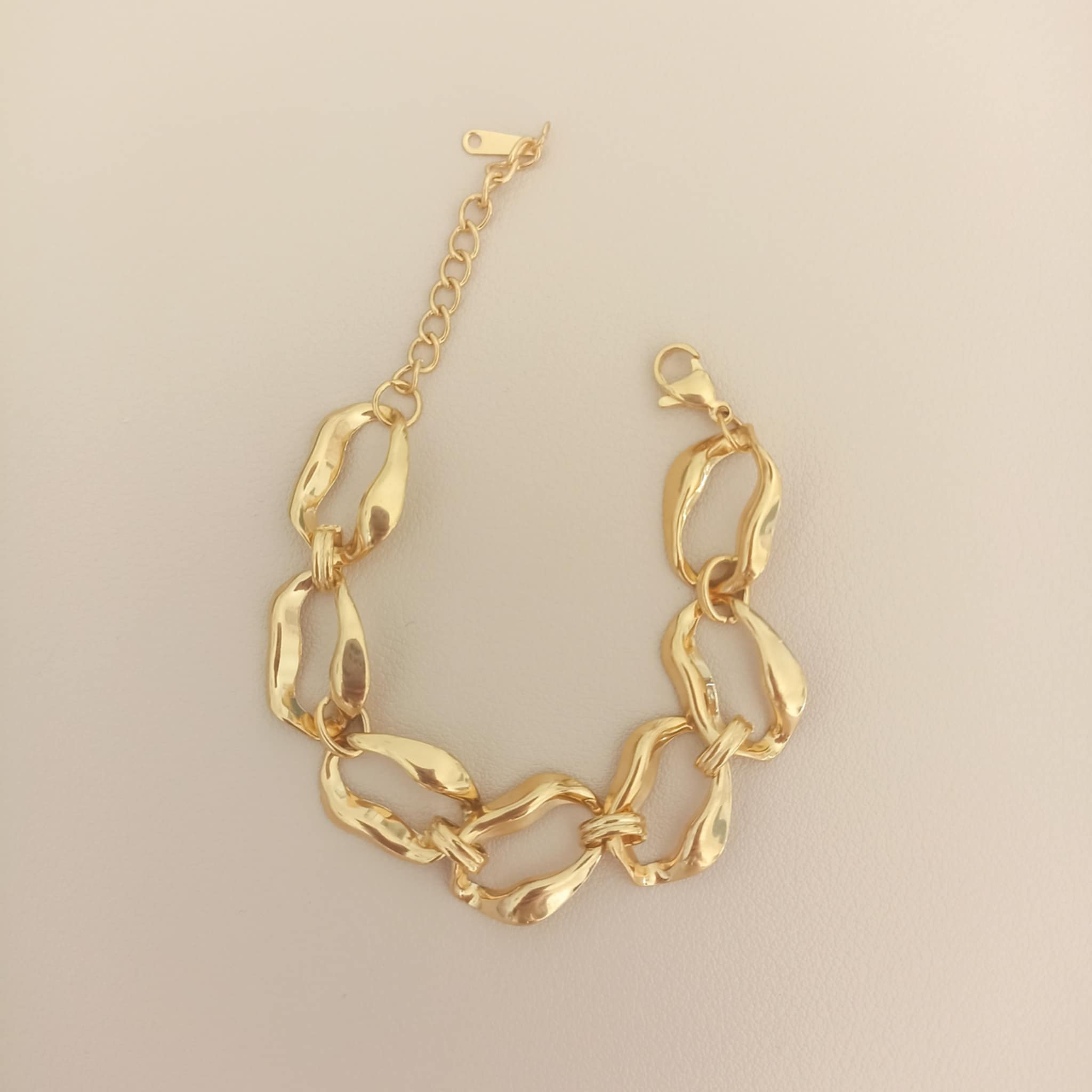 Le Bracelet Acier Inoxydable – Mailles Ovales se distingue par ses maillons volumineux et légèrement irréguliers. Chaque maille a été volontairement déformée, créant un effet dynamique et organique qui attire naturellement le regard. Cette particularité confère au bracelet une allure contemporaine et très esthétique, loin des chaînes traditionnelles uniformes.