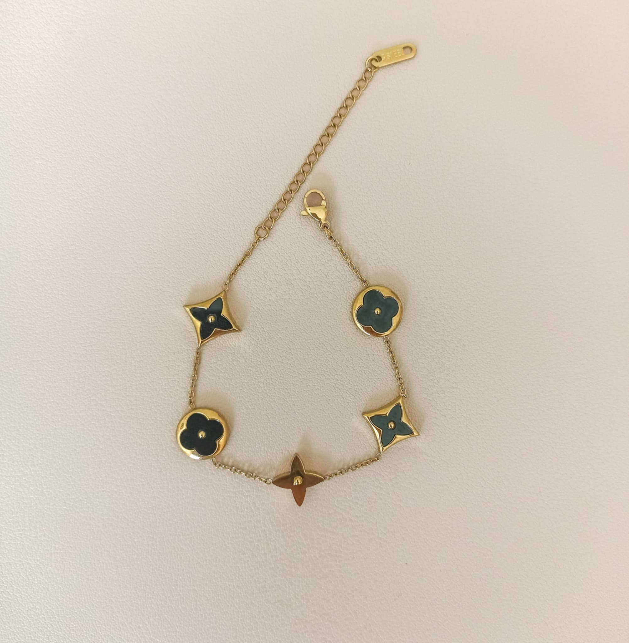 Le Bracelet Acier Inoxydable Nocturne se distingue par ses motifs floraux et étoilés délicatement travaillés, qui apportent une touche chic et féminine à toutes vos tenues. Son contraste entre le noir intense et les finitions dorées en fait un accessoire à la fois moderne et intemporel. Que vous soyez en soirée habillée, au travail ou simplement dans la vie de tous les jours, ce bracelet saura sublimer votre style.