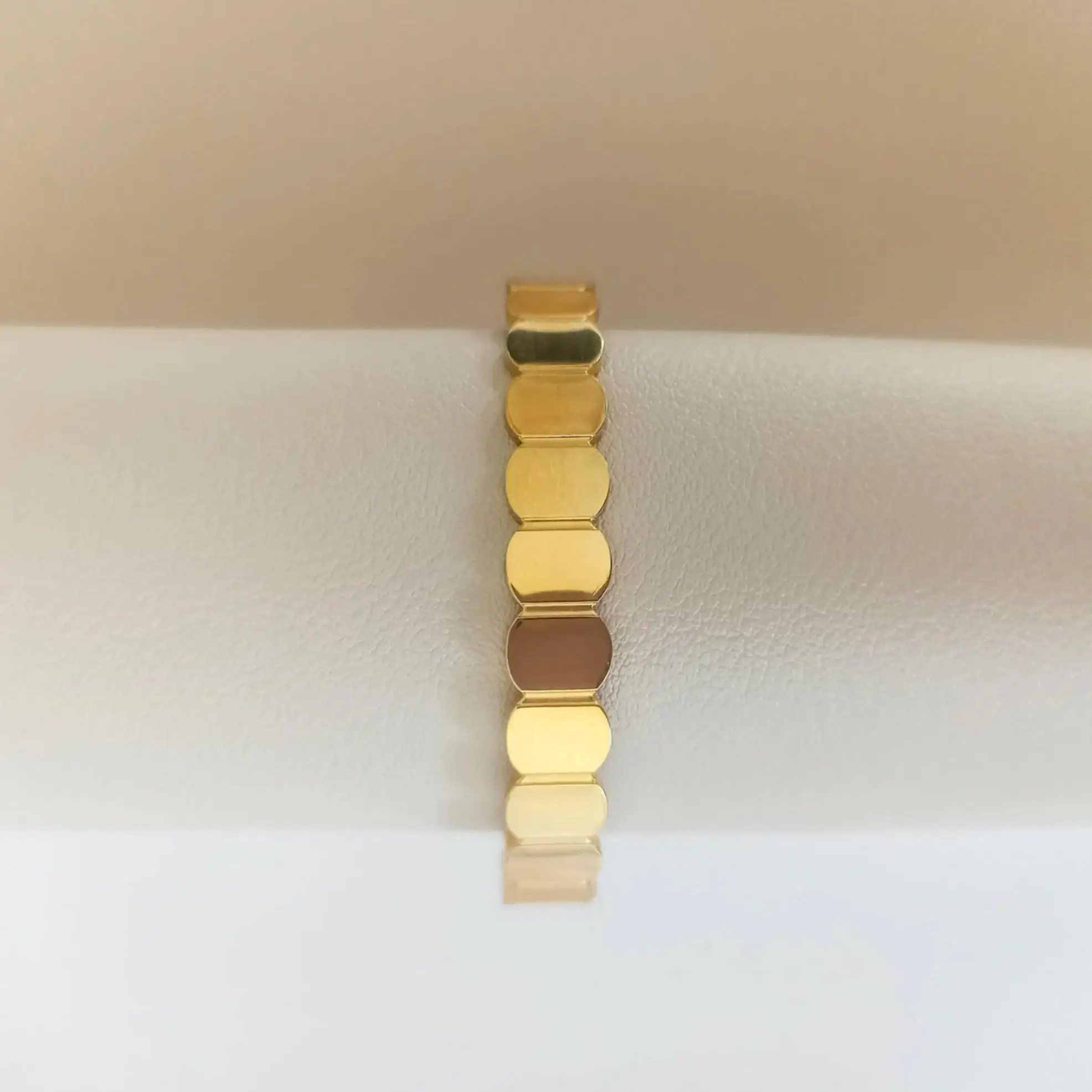Ce bracelet se porte aussi bien seul pour une allure sobre et chic qu’en accumulation avec d’autres bracelets pour un style plus affirmé. Associez-le à une montre ou à d’autres bijoux dorés pour un look harmonieux.