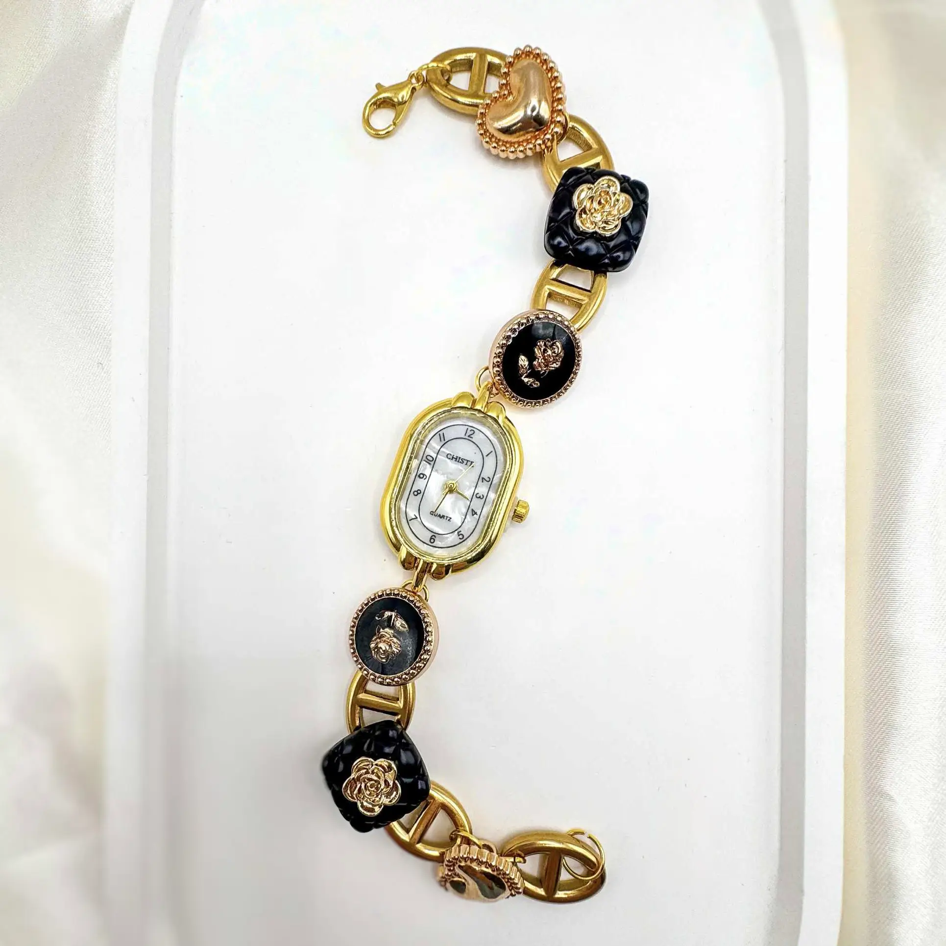 Mon objectif est de permettre à chaque femme de se sentir unique, en portant un bijou qui ne ressemble à aucun autre. C’est pourquoi chaque montre est assemblée individuellement, avec une attention particulière portée à l’harmonie des formes, des matières et des détails.